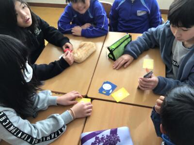 低学年の子がどんどん発言しているグループもあり、言葉(語彙)の学び合いが活発に行われていました。異学年で取り組んでいるからこそ、様々なやりとりが生まれ、充実した活動となりました。