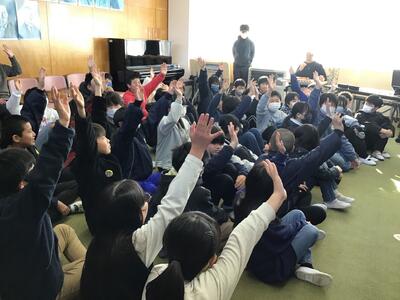 会場のスペースの関係で、1~4年生と5・6年生に分けて2回行っていただきました。