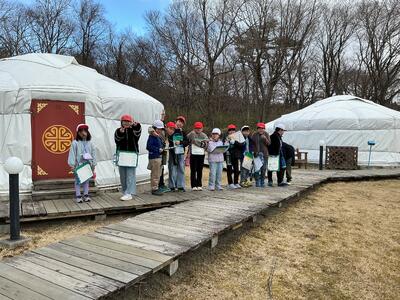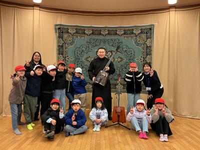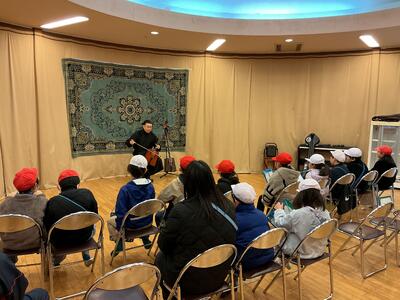 モンゴリアビレッジでは、馬頭琴の演奏を聴かせていただいたり、実際にゲルの中を見学させていただいたりしました。モンゴルの暮らしについて、子供たちは興味津々でお話を聞き、普段とはちがう文化に触れる貴重な時間となりました。