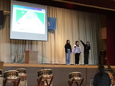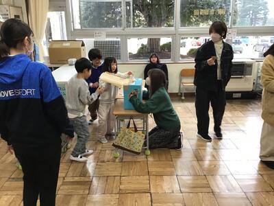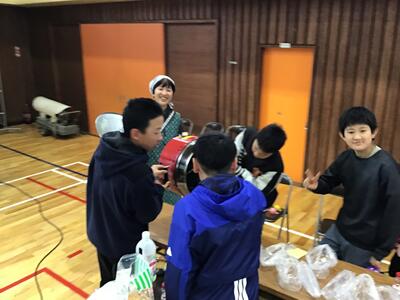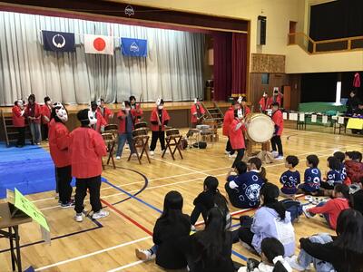 体育館に戻った後、下級生による出し物、プレゼントの贈呈を行いました。出し物では、学年ごとに歌やけん玉の技の披露などがありました。「那須高原フェスティバル」の時と同じように、6年生から自然に手拍子が始まり、「がんばれー」といった励ましの言葉も出て、温かい雰囲気で会が進みました。涙ぐむ子もいて、本当に気持ちが素直で優しい子たちなんだと改めて感じました。