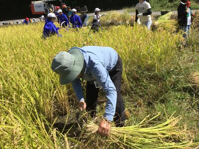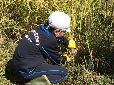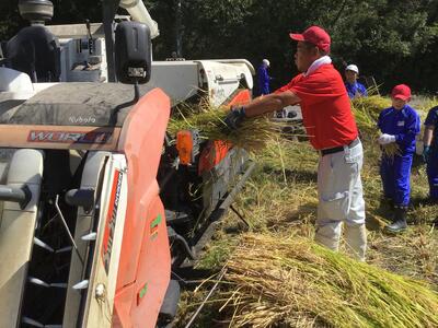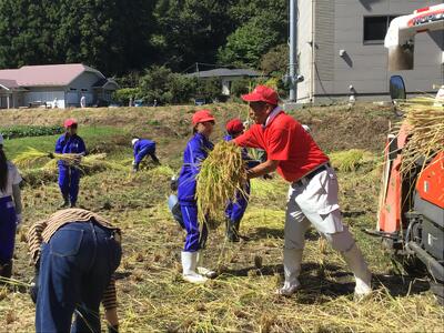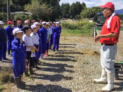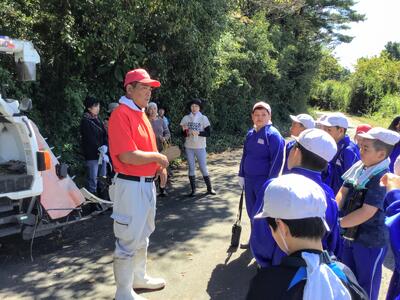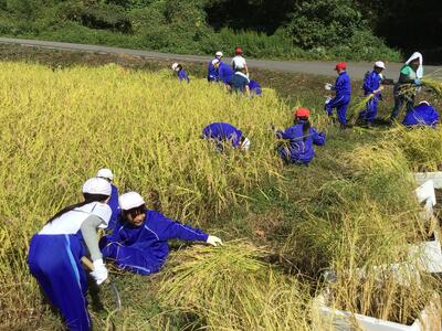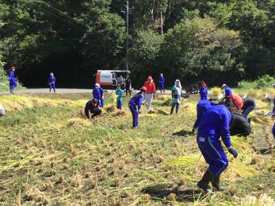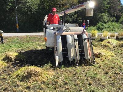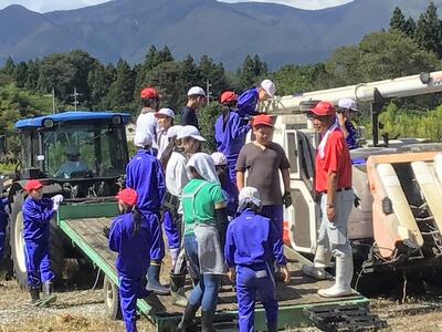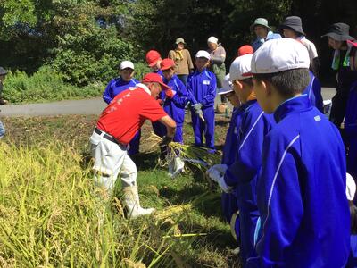 9月30日(火)5年生が稲刈りを行いました。大森政宏様に御指導をいただきながら、保護者の皆様の御協力も得ながら、すいすいと手際よくあっという間に、稲を刈っていきました。さすが5年生です。その後、コンバインで脱穀をしました。爽やかな秋晴れのもと、収穫の楽しみ、喜びを分かち合うことができました。ありがとうございました。