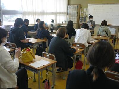 2年生の教室は全体からグループに形態を変化し保護者の皆さんと一緒に活動です。