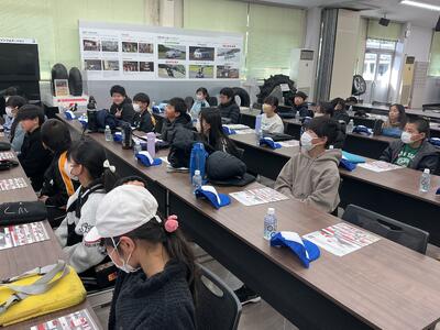 最初の講話では、タイヤが数十種類もの原料から作られていることや、乗用車だけでなくバイクや農耕車など、多くの種類のタイヤを生産していることを学びました。その後の工場見学では、