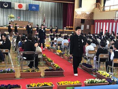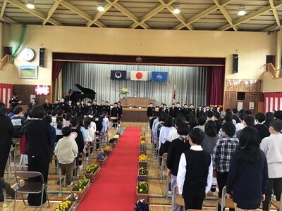 在校生も「おめでとう!」の気持ちを込めて、一生懸命に歌を歌ったり、言葉を伝えたりしていましたね。在校生も立派でした。みんなの思いが一つになった、すばらしい卒業式でした。