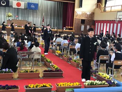 一人一人がしっかりした態度で堂々と式に臨んでいました。そして、卒業への思いを様々な場面で表現していました。子供たちは最後にまた一つ、下級生の目標になる立派な姿を見せてくれました。