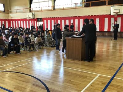 各学年への修了証書の授与を行い、これまでがんばったこと(主に年明けから、特に卒業式)を振り返り、令和8年度への期待や希望をもてるように各学年ごとにメッセージを送りました。