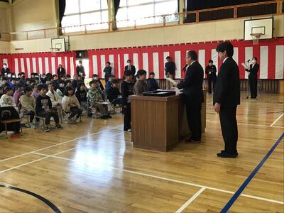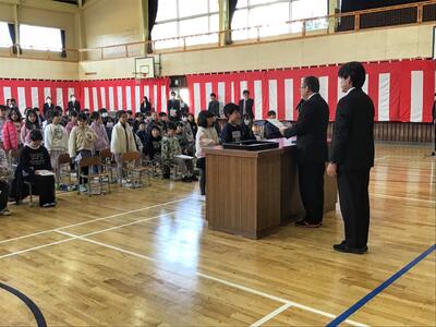 子供たちは、卒業式同様、しっかりした態度で式に臨み、話を聞いていました。既に、次年度に向けての心構えができているような様子でした。